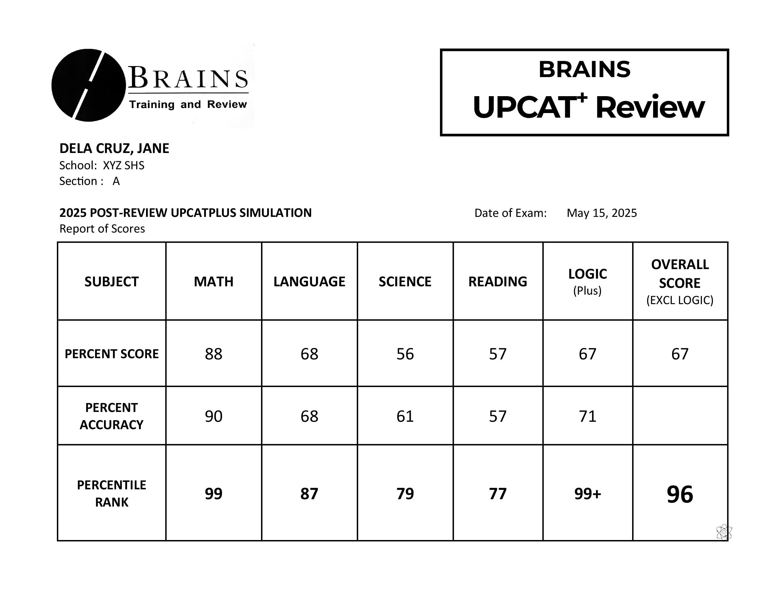 3. receive your scores both in percentage and percentile ranks compared to our large database of scores. This gives you an idea of your strengths and weaknesses so you can act with focused preparation.